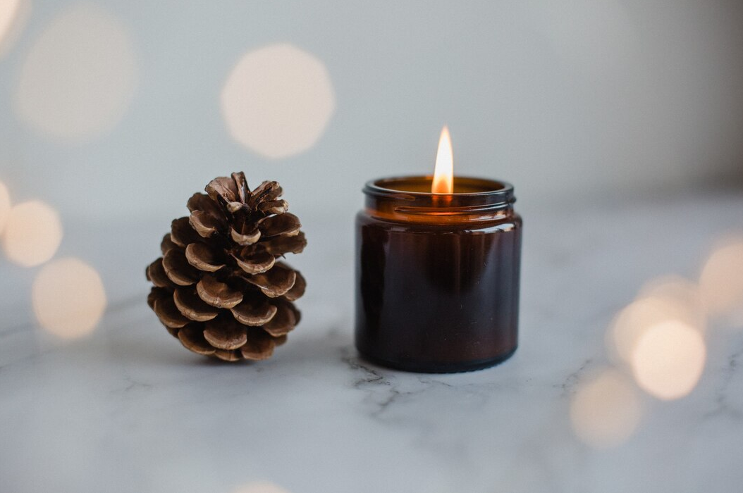 Hand-poured soy candle with calming cedar fragrance for a cozy home atmosphere.